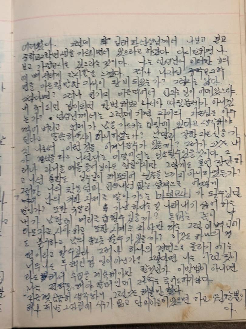 그런데 만일 자취하게 되면, 아아 골치 아프다. 그런걸 생각하면 골치가 아파 못견디겠다. 오늘은 너무 피곤하다. 내일 시험도 있고한테…아주 단념 해 버리려 했으나 수학 성적이 괜찮게 나왔기 때문에 기권할 수도없다. 그러나 내일의 세 과목을 위해서 나는 좀더 악착같이 study해야겠다. 그런데 오늘 나는 박재웅이 의외로 고아라는 걸 들었다. 확실치는 못하지만 만일 그렇다면 그와 함께 자취할 생각도 난다마는, 그러나...