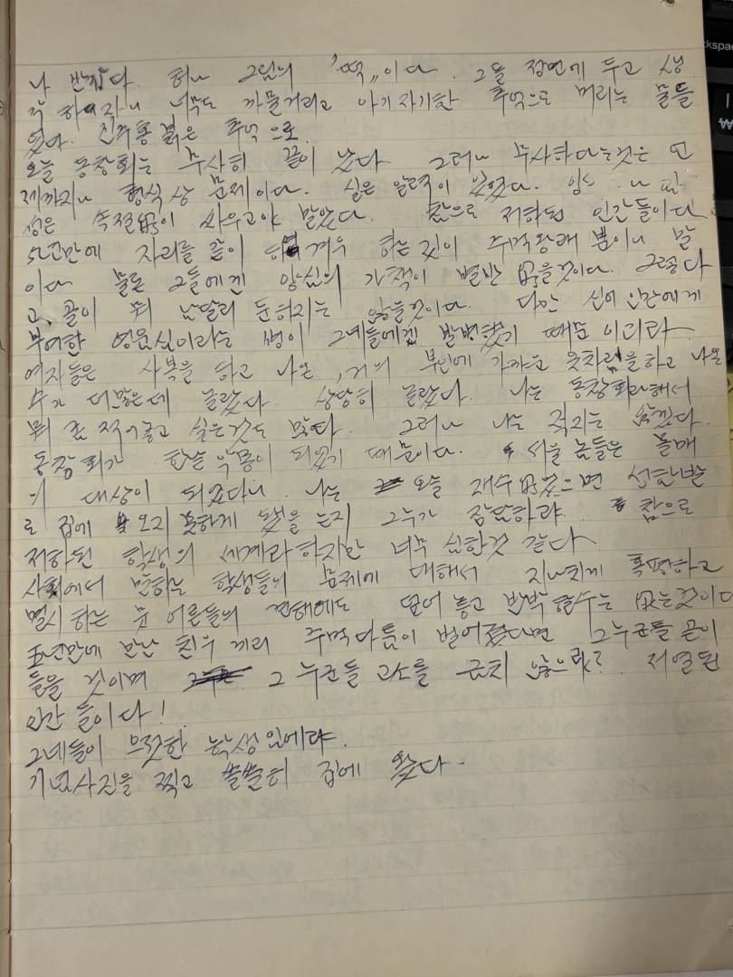 나중에 신용태선생이 좋은 말 해 주었다. 질문을 하드라도 학생 답게 하라는 것, 좀더 순종하는 태도를 지으라는 것 등을 말해 주었다. 애써 들어 새기려고 노력했다. 그렇지만 오늘 교무실에서 당한 굴욕은 영원히 잊지 않을 것이다.